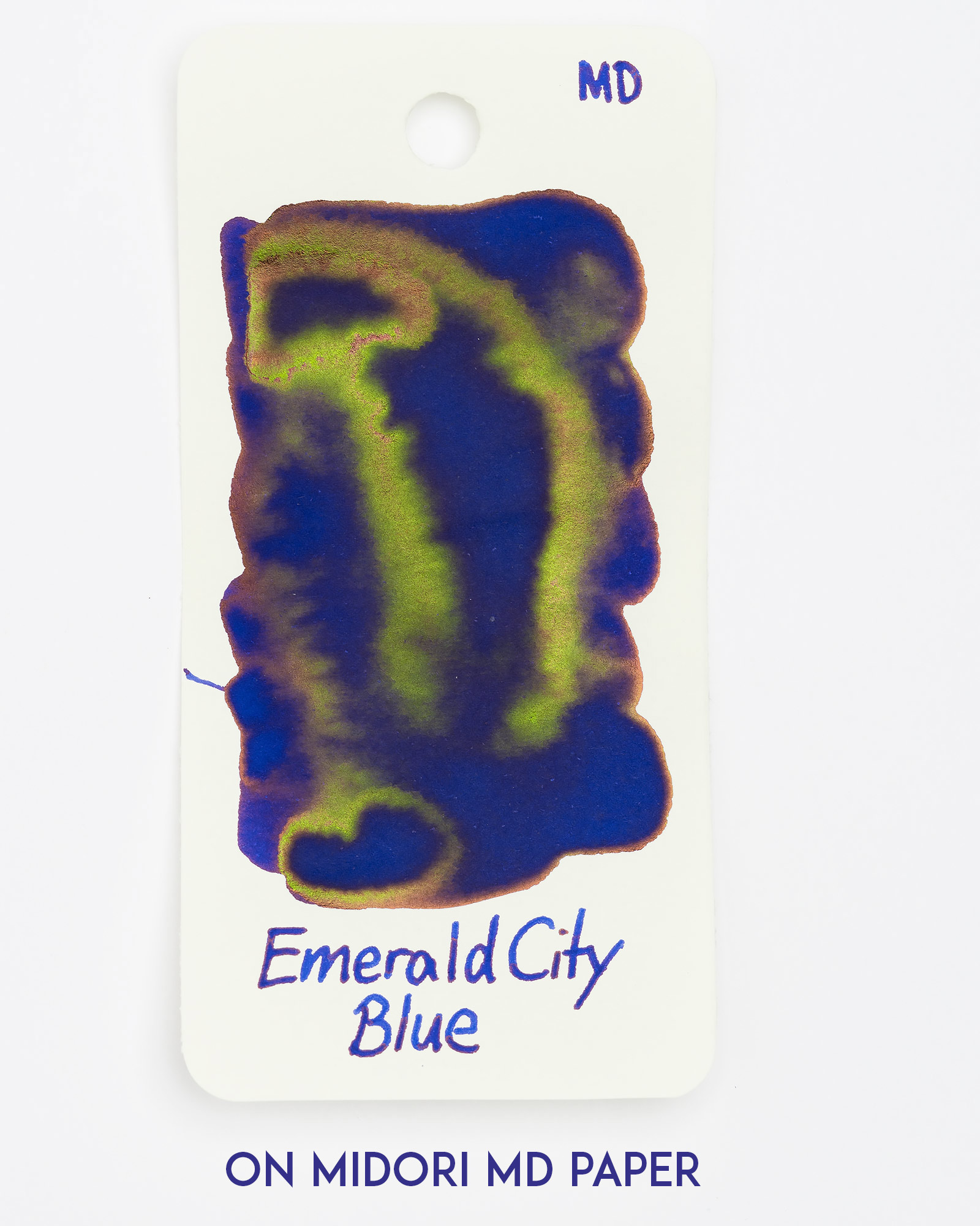 On most papers, don’t anticipate much green sheen when writing with a fountain pen. Dip pens and brushes will produce more.